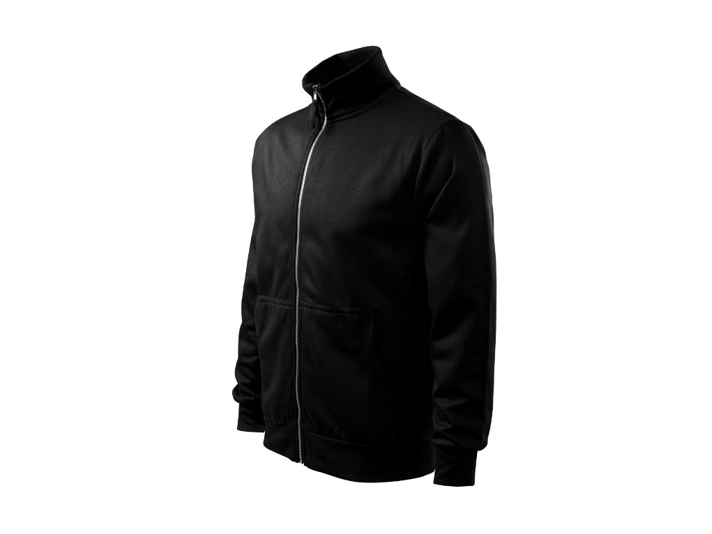rovný střih s bočními díly celopropínací kovový zip stojáček a boční díly z žebrového úpletu 2:2 s 5 % elastanu vnitřní průkrčník začištěn kontrastní páskou nakládané kapsy ve stylu klokanky dolní lem, manžety a lemy kapes z žebrového úpletu 2:2 s 5 % elastanu vnitřní strana počesaná