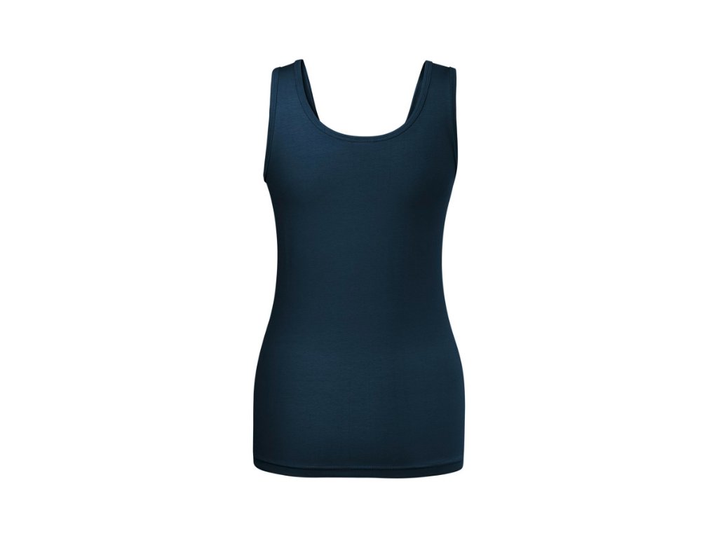 strečový materiál udržující stálost tvaru přiléhavý střih s bočními švy hlubší kulatý výstřih průkrčník a průramky lemovány vrchovým materiálem širší ramínka