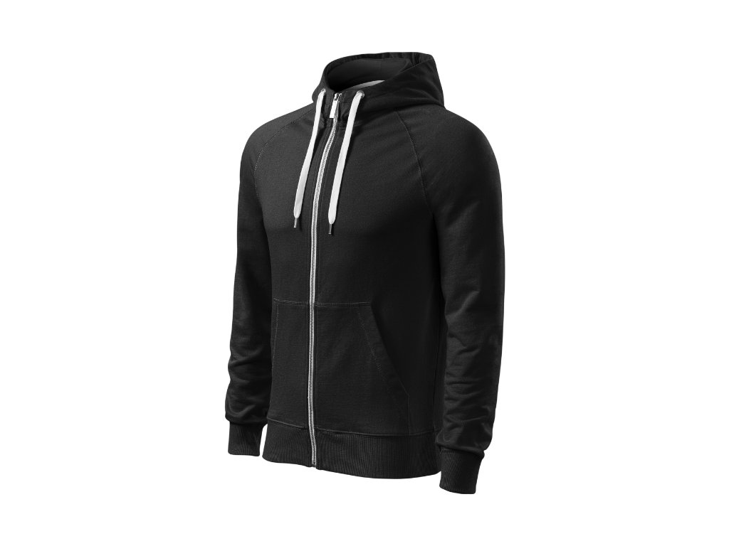 rovný střih s bočními švy celopropínací kovový zip táhlo zipu s gravírovaným logem kapuce s podšívkou, na stažení šňůrkou vnitřní průkrčník začištěn páskou raglánové rukávy s ozdobným prošitím nakládané kapsy ve stylu klokanky dolní lem a manžety rukávů z žebrového úpletu 2:2 s 5 % elastanu kontrastní prvky vnitřní strana nepočesaná